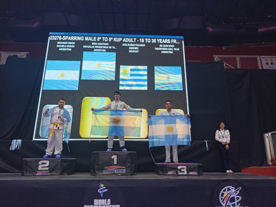 Los tres taekwondistas, que tuvieron el privilegio de representar a Argentina, como así también a Azul, demostraron esfuerzo, disciplina y compromiso en cada combate. Es por eso que lograron subirse al podio en sus respectivas categorías en una competencia que reunió a cientos de atletas de distintas parte del mundo, quienes representaron a más de 20 países. Al respecto, los resultados individuales que llevaron al éxito a la escuela de taekwondo de esta ciudad fueron los siguientes: Enzo de León, medalla de bronce en lucha hasta 80kg; Sabrina Korenhof, medalla de bronce en lucha -13 años y Gregorio Gainza, medalla de bronce en lucha -13 años.