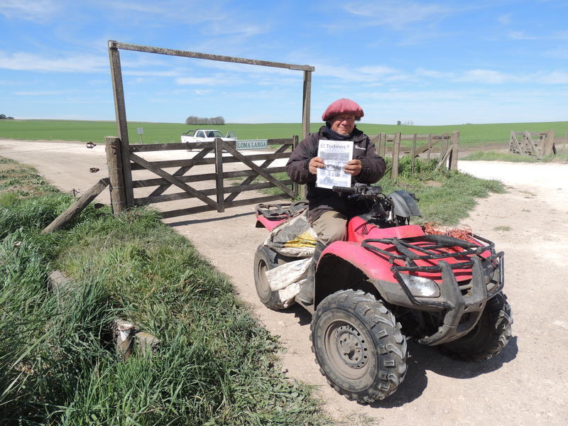 Para quien no sabe, explicó Claudio, que "El Tedines" es un periódico en papel que se me ocurrió hacer en el año 2006. Y me salió bien. Pero me dediqué a buenas noticias y a la comunidad rural. Por comunidad rural se entiende el campo y los pequeños pueblos que son muy chicos y están rodeados de campo. Ahí donde la vida pasa más tranquila".