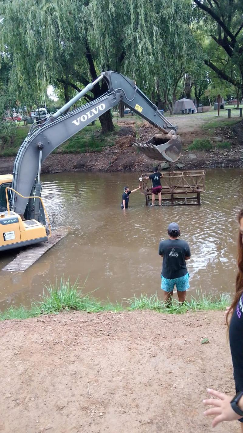 Juan explicó cómo se construye el puente anualmente para que circulen las motos desde el Camping al predio de la ex Cancha de Rugby.