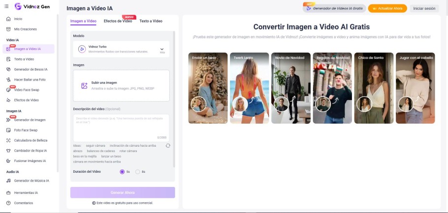 completo la creación de vídeos. Con la herramienta Image to Video AI de Vidnoz,