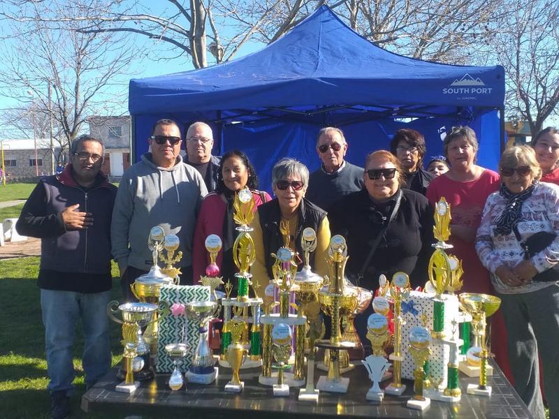 Integrantes de la comisión barrial y vecinos, durante una entrega de premios correspondientes a una actividad realizada en el 2025 en Monte Viggiano.