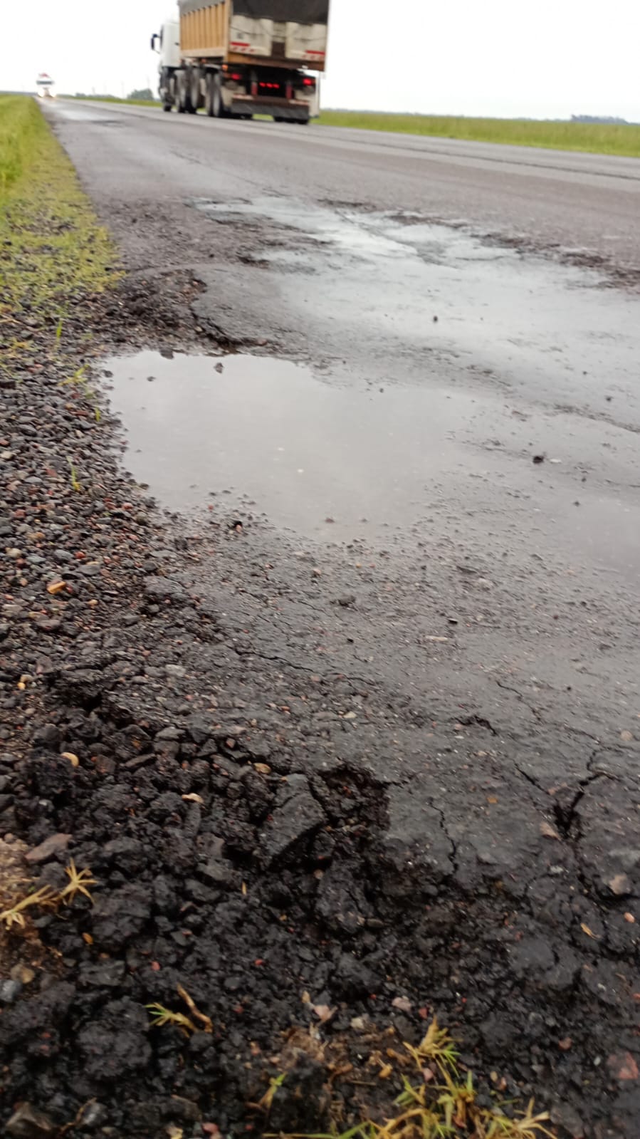 El estado actual de un sector de la Ruta 3 en el tramo Azul-Cacharí. Foto: Nacho Correa.
