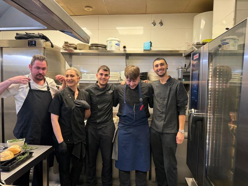 -El desafío es seguir manteniéndonos en esta línea, seguir respetando los estándares de la Guía Michelin como la Guía Repson y cada día buscamos la mínima mejora para seguir revalidando las menciones y en algún momento poder lograr esa tan preciada estrella que sería el broche de oro a la historia de este restaurante, del equipo que da la vida, como Agustín, Carmen, Ruben, Tania, y al equipo de cocina que no podría ser mejor. Juan el especialista en carnes que deja la vida por el equipo, Larisa que es la repostera, el brazo duro porque nos dice cómo nos tenemos que mover. Después está Mario, una persona muy encantadora que está creciendo a pasos agigantados y alguien que nos ayuda con la limpieza que es Manuela que es estupenda y está dispuesta a seguir aprendiendo.