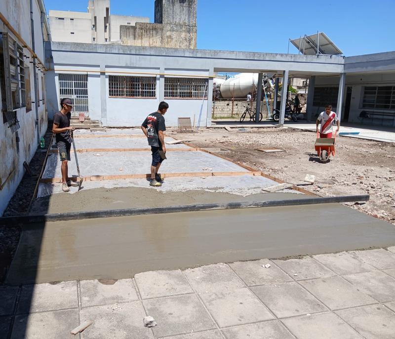 La reposición contó con la colaboración de la Cooperativa Eléctrica, que contribuyó con la donación de los caños cloacales y pluviales que se reinstalarían en el nuevo patio.