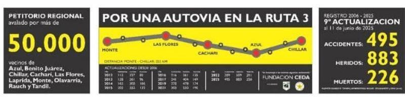 Fundación CEDA, Estrellas Amarillas y Vecinos Autoconvocados por la Autovía YA renovaron recientemente el cartel de siniestralidad en Ruta 3.