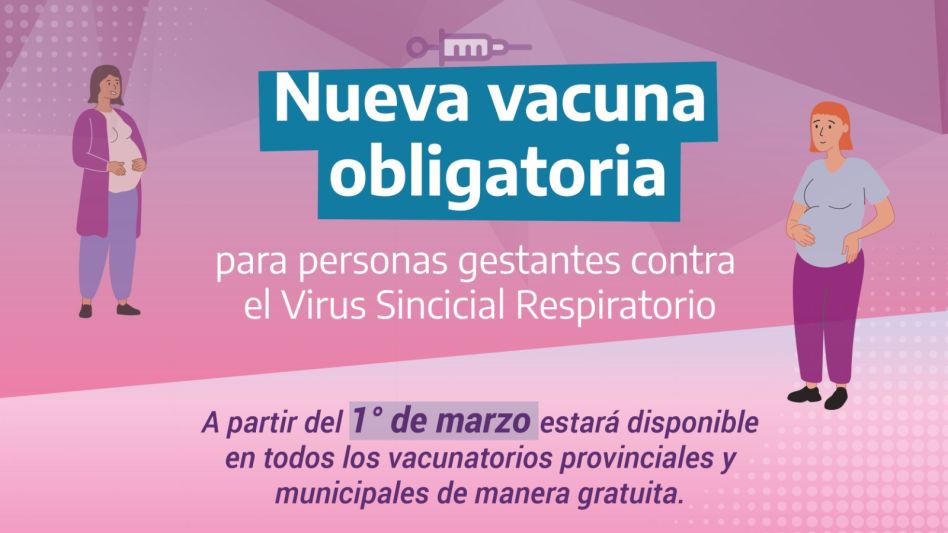 La vacuna contra el VSR, que se incorpora al Calendario Nacional de Vacunación de forma obligatoria y gratuita a partir de 2024, tiene una única dosis, puede aplicarse junto a otras vacunas del embarazo y se coloca entre los meses de marzo a julio para que las y los bebés estén protegidos, evitando las formas graves de esta enfermedad en los meses de mayor circulación del virus.